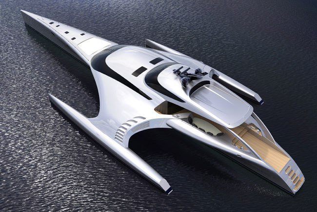 Los diseñadores, conjuntamente con los propietarios, trabajaron en un diseño que uniera el requisito de poder  realizar viajes oceánicos a la velocidad de un trimarán de carreras, como el “Earthrace” o el “ Cable and Wireless”, pero en un buque suficientemente estable para asegurar la comodidad de los pasajeros en todo momento, a la par que eficiente, para utilizar la mínima cantidad de combustible posible, y siempre rodeados del ambiente de confort y estilo típico de un yate de su clase y tamaño.