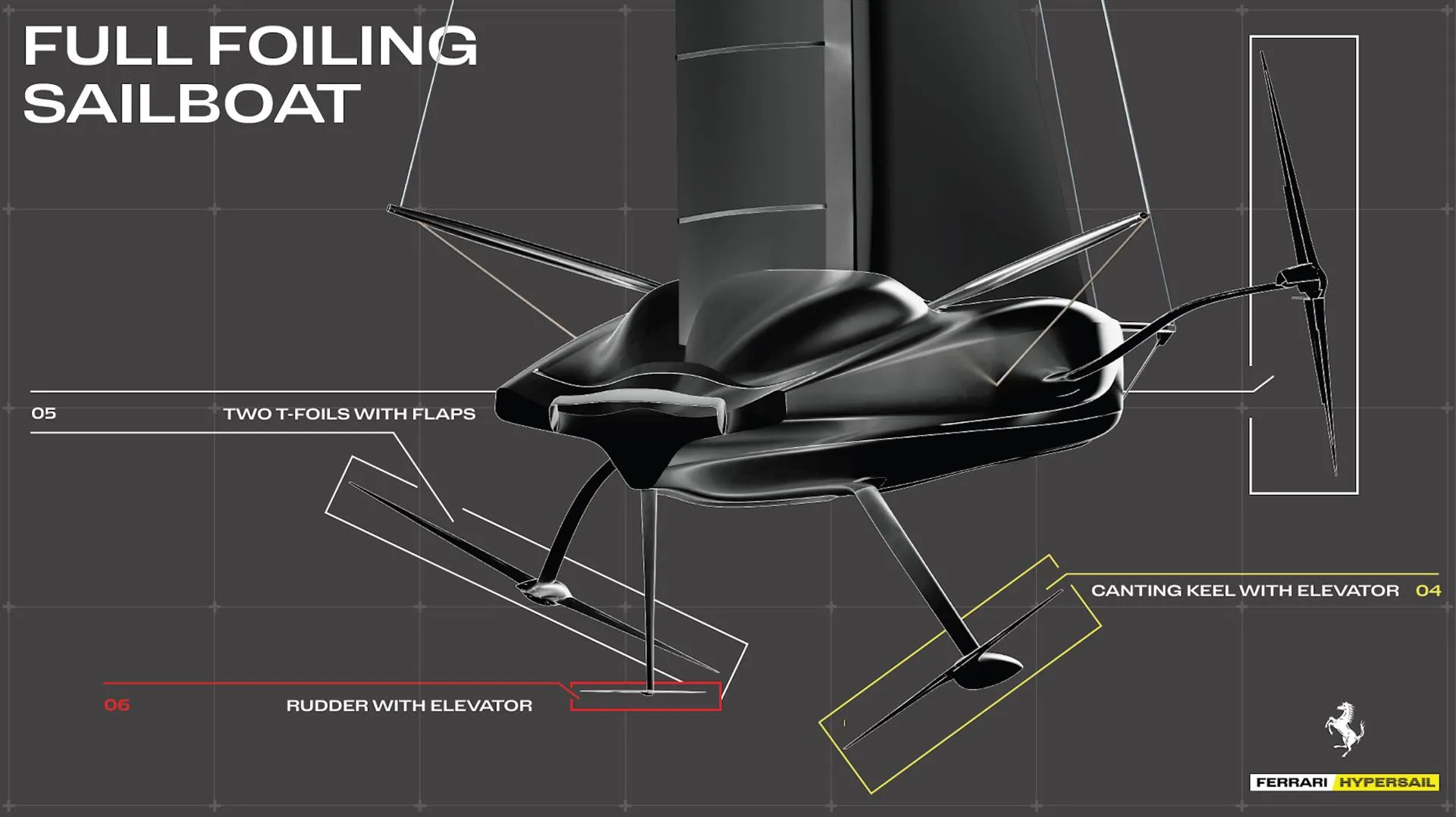 El vídeo de presentación del proyecto Hypersail ofrece atractivos vistazos del yate de vela y revela detalles de diseño inspirados en los hipercoches de Ferrari
