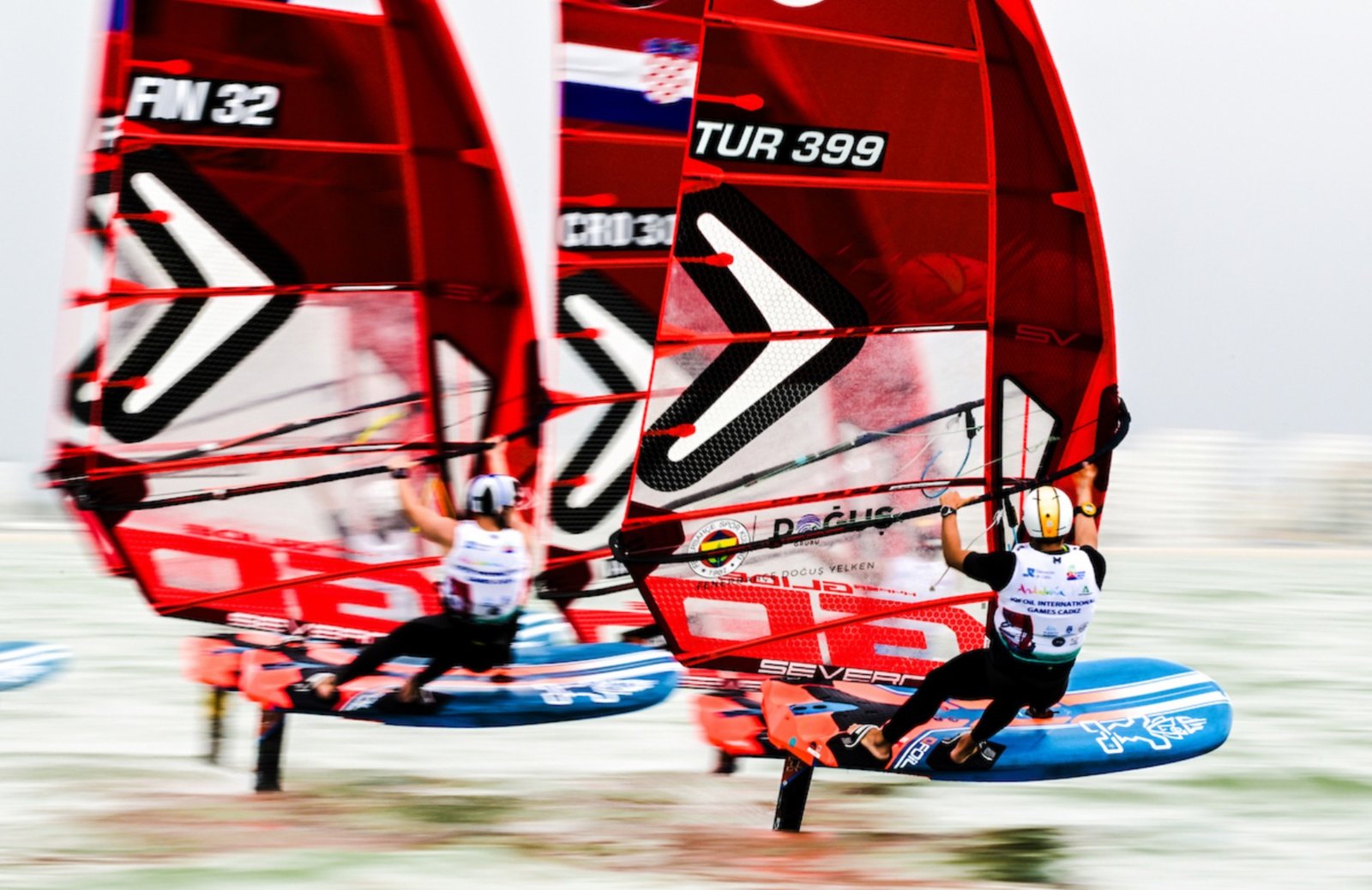 Tras un retraso matutino por falta de viento, la brisa finalmente llegó por la tarde, permitiendo a las flotas iQFOiL demostrar su velocidad y adaptabilidad en las Carreras de Velocidad.