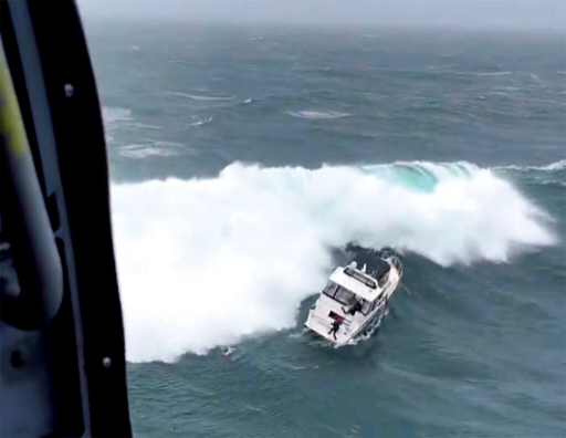 Dramático video : Un barco vuelca durante un rescate con olas de 11 metros